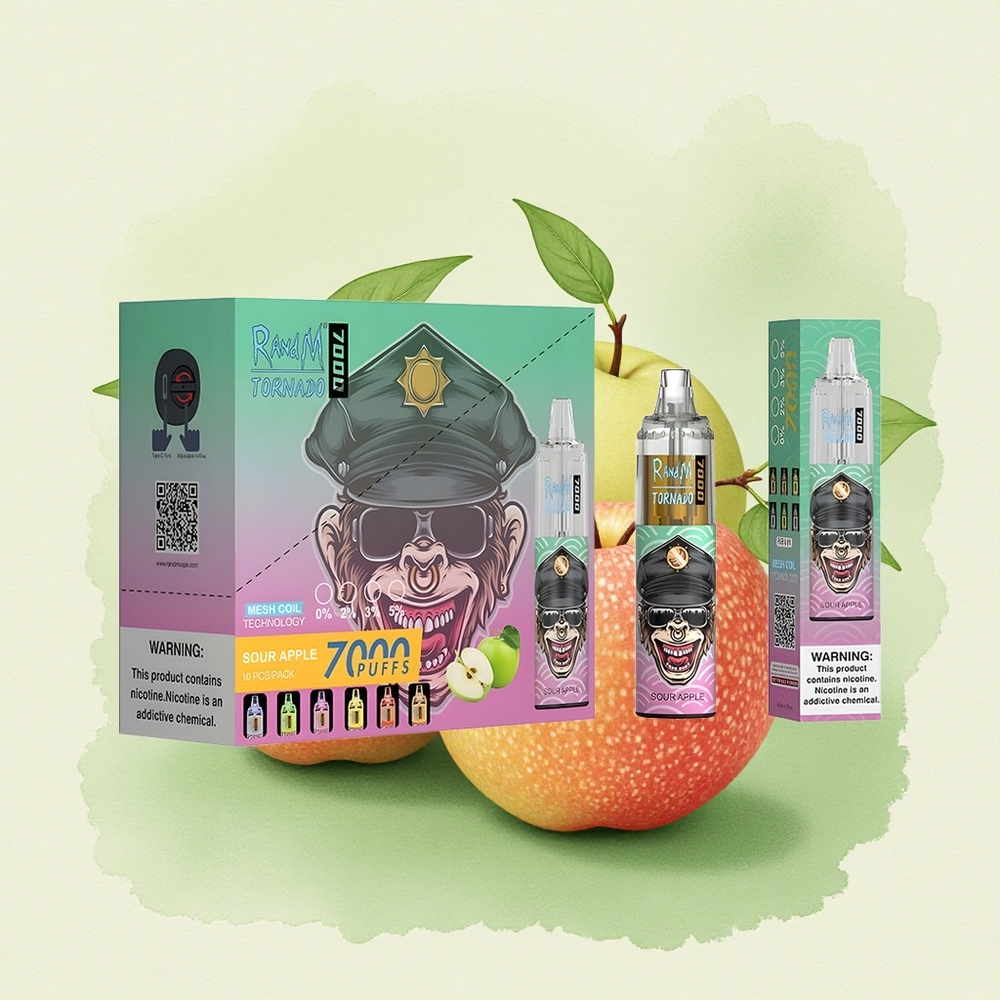 RandM Fumot Tornado 7000 Puffs Кисела Ябълка Мехова Намотка 850mAh 5% Никотин