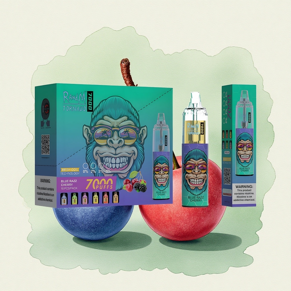 RandM Fumot Tornado 7000 Puffs Синьо Малинова Череша с RGB Светлина и 850 mAh